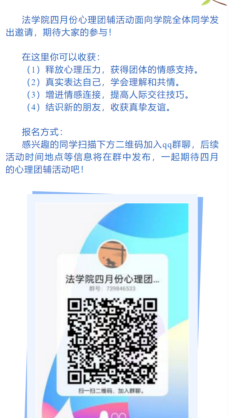 为促进学院心理委员间的熟悉与交流,提升心理委员团队的协作能力,更好地发挥其协助学院二级心理辅导站组织开展心理健康教育活动的重要作用,3月25日,学院邀请到校心理健康教育指导中心房津如老师在开云kaiyun官网505教室为21、22级心理委员开展团辅活动。