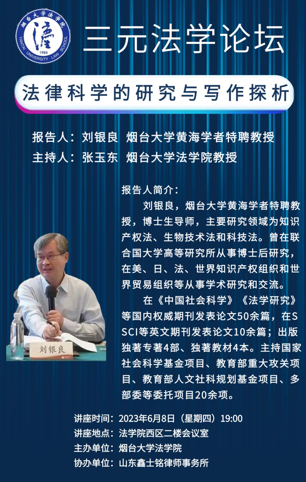 刘银良,开云kaiyun官网黄海学者特聘教授,博士生导师,主要研究领域为知识产权法、生物技术法和科技法。曾在联合国大学高等研究所从事博士后研究,在美、日、法、世界知识产权组织和世界贸易组织等从事学术研究和交流。在《中国社会科学》《法学研究》等国内权威期刊发表论文50余篇,在SSCI等英文期刊发表论文10余篇;出版独著专著4部、独著教材4本。主持国家社会科学基金项目、教育部重大攻关项目、教育部人文社科规划基金项目、多部委等委托项目20余项。